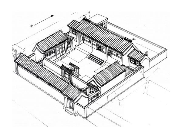 [1] เอ้อร์จิ้นย่วน 二进院 คือบ้านที่ประกอบเป็สี่เหลี่ยมขนาดเล็ก ดังรูป