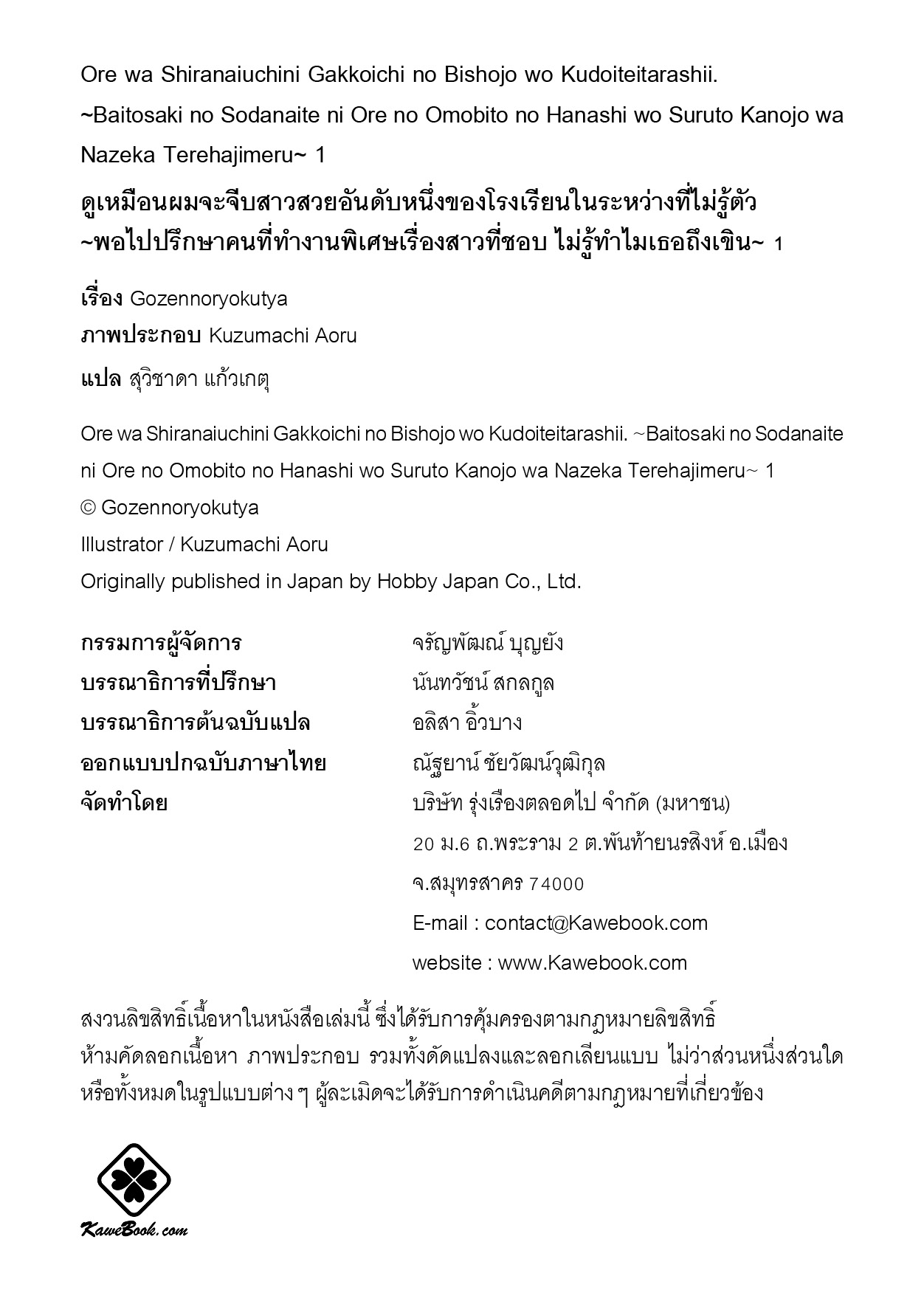 อาจจะกะทันหันไปหน่อย แต่คุณมีที่ปรึกษาที่ไว้ใจได้อยู่รอบตัวกันไหม จะเป็พ่อแม่ พี่น้อง เพื่อน หรือใครก็ได้ ถึงจะมีแค่คนเดียวก็ไม่เป็ไร ถ้ามีคนแบบนั้นอยู่ในชีวิตละก็ ให้ความสำคัญมากๆ ไว้ดีกว่า เพราะไม่ใช่จะได้เจอกันง่ายๆ คงมีคนมากมายทีเดียวที่ไม่มีใครพอจะไว้ใจปรึกษาได้เลยในชีวิต ซึ่งผม ทานากะ มินาโตะ รู้สึกขอบคุณมาก ที่ตัวเองมีที่ปรึกษาที่ไว้ใจได้อยู่